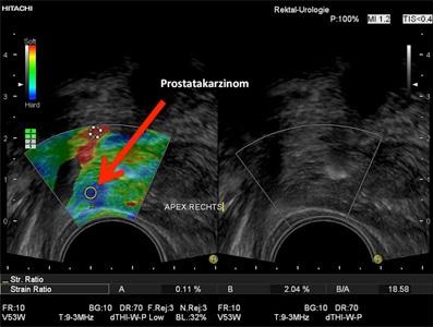 Durch die Elastographie wird im Rahmen der Prostatabiopsie bei Tumorverdacht